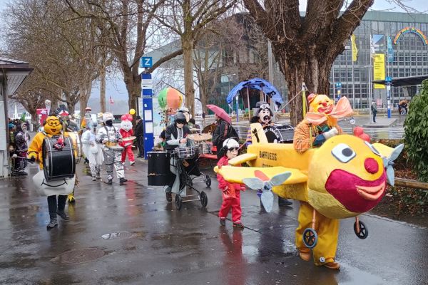 Die ganze Stadt ist voll mit mehr oder weniger kostümierten Menschen und phantasievoll gestalteten Faschingswagen. Überall wird Musik gespielt. Offenbar gibt es in Luzern und Umgebung eine sehr hohe Dichte von Trommlern und Blechbläsern.