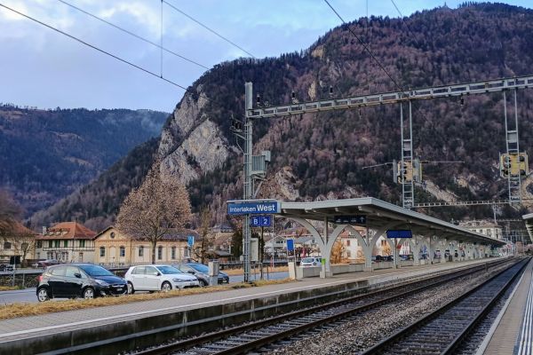 Schweizer Züge sind pünktlich, deshalb komme ich auf die Minute genau am Ziel an. Hallo, Interlaken! So oft habe ich deinen Namen auf Zugzielanzeigen gesehen. Jetzt lernen wir uns endlich kennen.