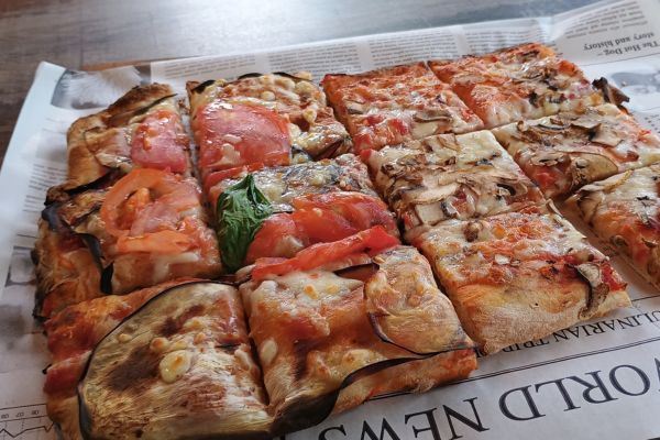 - Pizza at Pizzesco. A Roman-style eatery with a restaurant where you can order a full pizza, and a window where they sell rectangular slices. From about €3.50 per slice (10 cm/4 inches long).