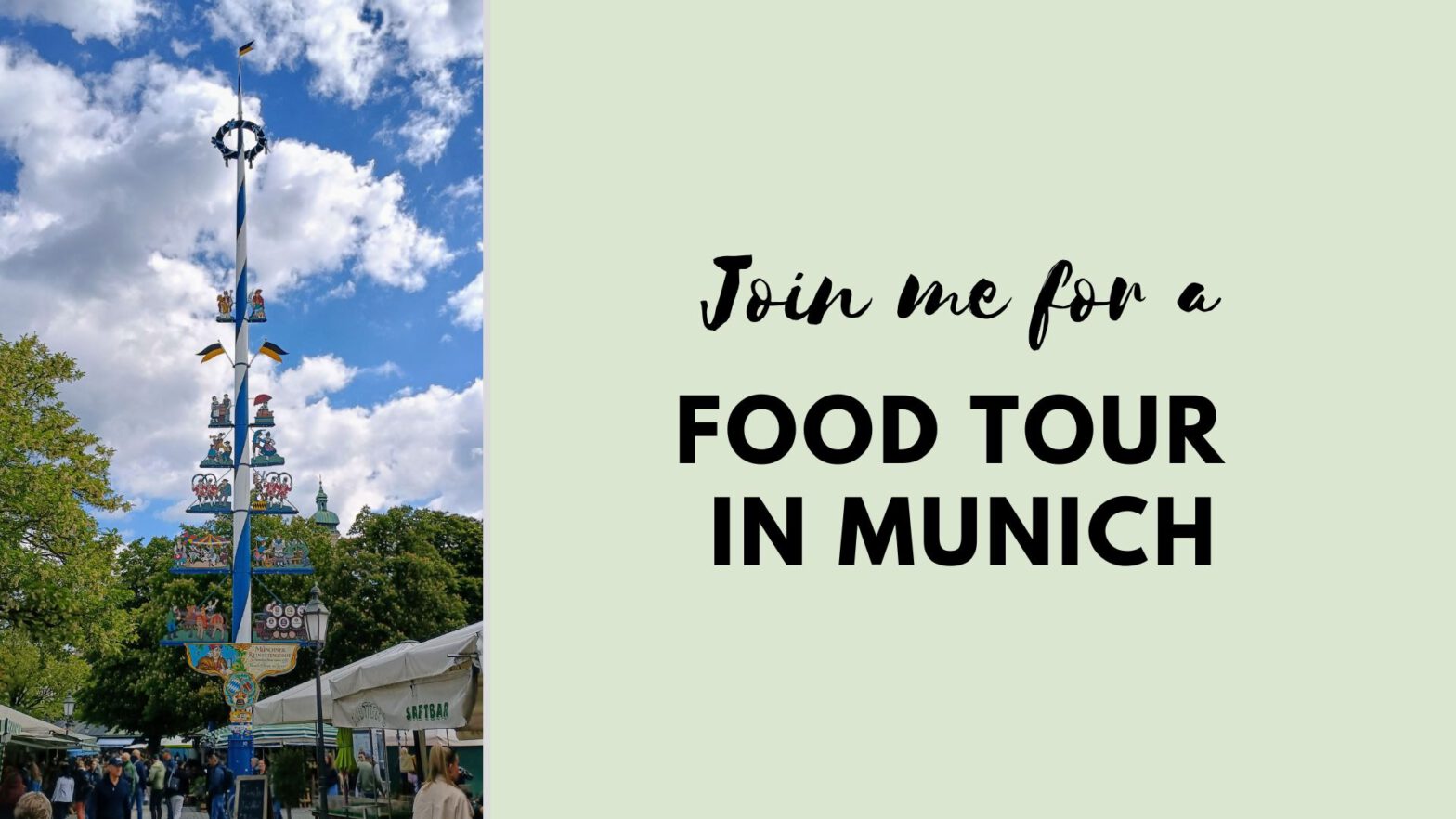 At this time, I offer the following tours: The Traditional Bavarian Cuisine Tour; The Sweet Tour of Munich; The Vegan Tour of Munich; and The Traditional Christmas Markets Foods Tour. Details below!