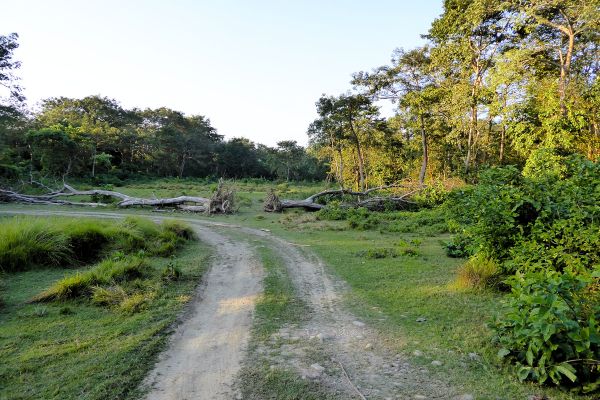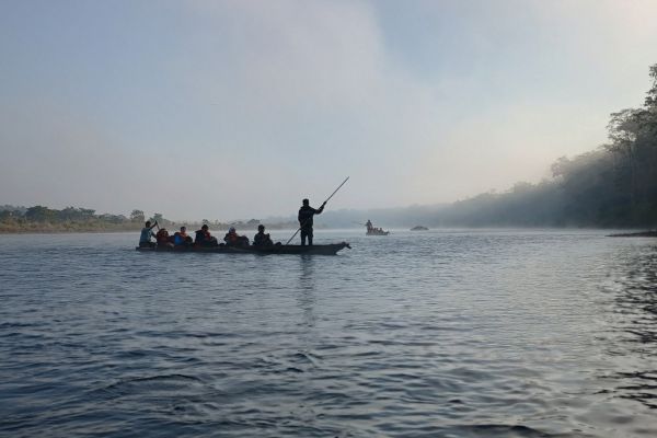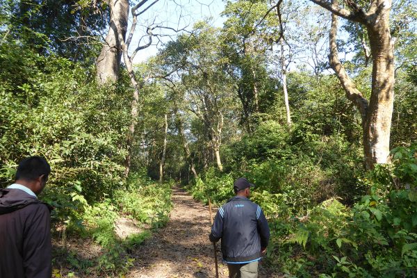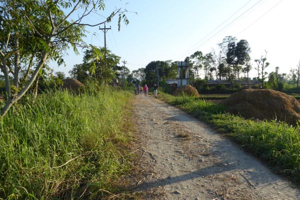 Von Pokhara aus lagen etwa 150 Kilometer Distanz sowie viele Höhenmeter Abstieg vor uns, bis wir in Chitwan ankamen. Hier sieht man die Berge zwar noch am Horizont, das Klima ist aber ganz anders. Plötzlich waren wir wieder bei über 25 Grad Tagestemperatur und sehr milden Nächten.