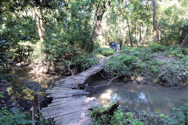Auf dem letzten Stück durch den Wald zurück zum Fluss wirkten unsere Guides tatsächlich auch etwas unentspannt. Aber was auch immer uns gesehen haben mag, wir sahen es nicht.