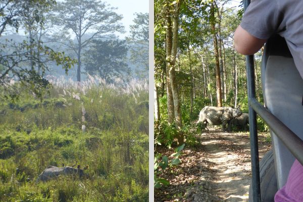 Randzone, das heißt, wir waren gar nicht „richtig“ im Park. Und trotzdem wimmelte es nur so von Nashörnern. Ich war fassungslos – in Tansania und überhaupt in Afrika war ich überglücklich, am Horizont auch nur ein einziges Nashorn zu sehen. Hier in Nepal sahen wir innerhalb kürzester Zeit gleich zehn.