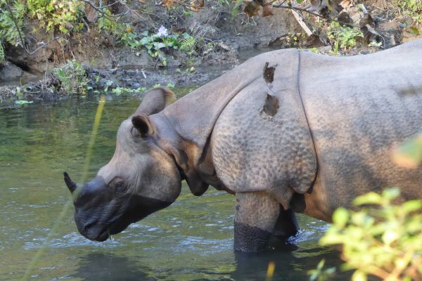 Und in dem gleichnamigen Nationalpark kann man einiges an Tieren zu Gesicht bekommen. Zum einen beheimatet Chitwan fast die gesamte nepalesischen Panzernashornpopulation. Außerdem gibt es verschiedene Krokodilarten, Bären und sogar Tiger. Bei letzteren muss man schon sehr viel Glück haben, um einen zu sehen. Aber es heißt bei Safaris ja immer: Du siehst das Tier nicht, das Tier sieht aber Dich.