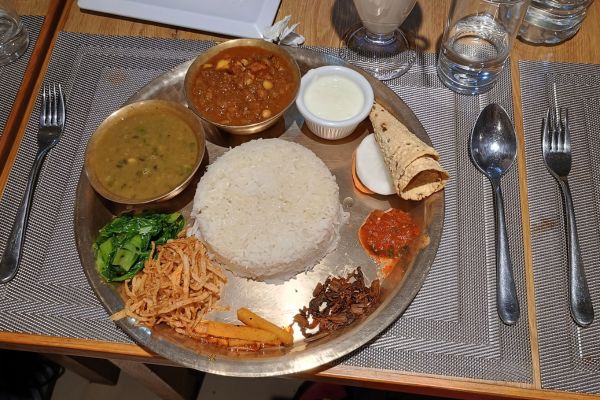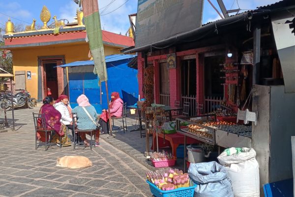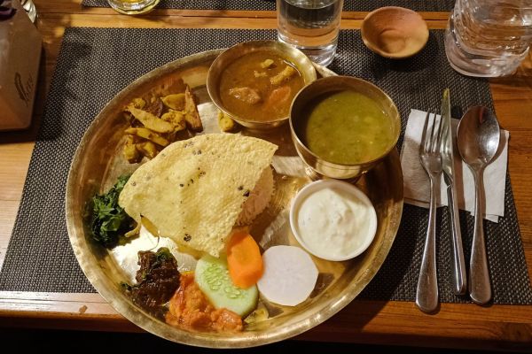 In Dhulikhel sind wesentlich weniger Touris unterwegs als noch in Bhaktapur. Unser Lokal hatte zwar eine englische Speisekarte. Die Jungs hinter der Theke traf trotzdem fast der Schlag, als sechs Ausländer*innen vor ihnen standen. Und dann ganz komisch ihr Essen bestellen. Wir waren nachher sehr satt. Das Personal hatte wahrscheinlich für mehrere Tage genug von uns zu erzählen.