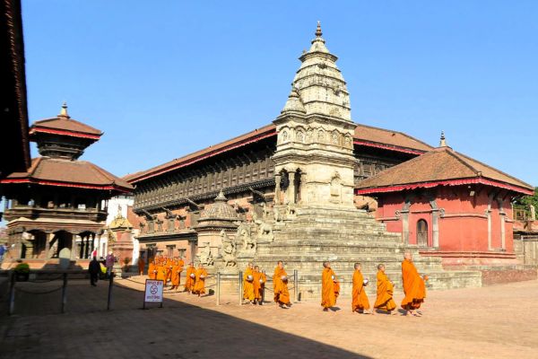 Straße runter, rechts, schon standen wir auf dem Durbar Square, also dem Platz vor dem Königspalast. Anfangs waren noch mehr Mönche als Touristen unterwegs. Das änderte sich aber bald.
