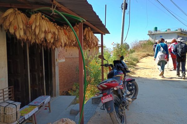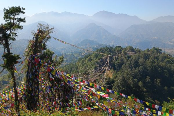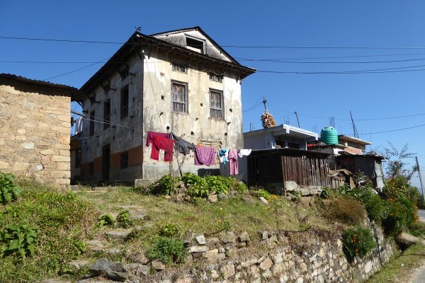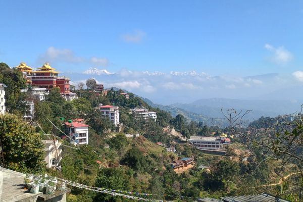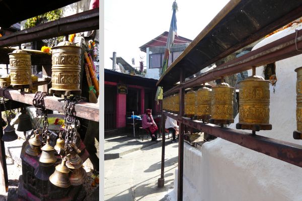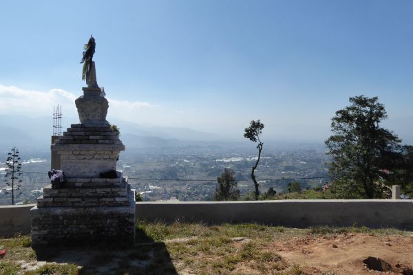 Dhulikhel liegt etwa 30 km östlich von Bhaktapur. Wir fuhren unseren ersten Byway: die Nebenstraße über die Dörfer. Ziel war das Kloster Namobuddha, die heiligste buddhistische Stätte im Land. In Nepal dominiert der Hinduismus, aber der Buddhismus ist auch gut sichtbar. Unser Guide wurde nicht müde zu betonen, dass die Grenzen fließend seien und man auch im Tempel der anderen Religion bete.