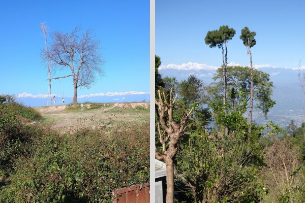 Während wir warteten (ziemlich lange warteten, denn Essen dauert in Nepal immer richtig lang), schauten wir alle sehnsüchtig auf diese Schaukel, die da draußen stand. Ohne Mensch drin sieht sie ein wenig aus wie ein Galgen, aber mit Mensch …