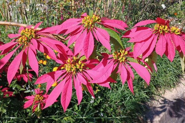 Nachdem wir genug Fotos geschossen hatten, unternahmen wir einen Gang durch das Dorf, das gleich unterhalb der Straße lag. Der Weihnachtsstern wuchs haushoch, und auch sonst gab es viel zu sehen. Unter anderem die Ruinen zweier Hotelanlagen, die hier im Bau waren – bis COVID dazwischenkam.