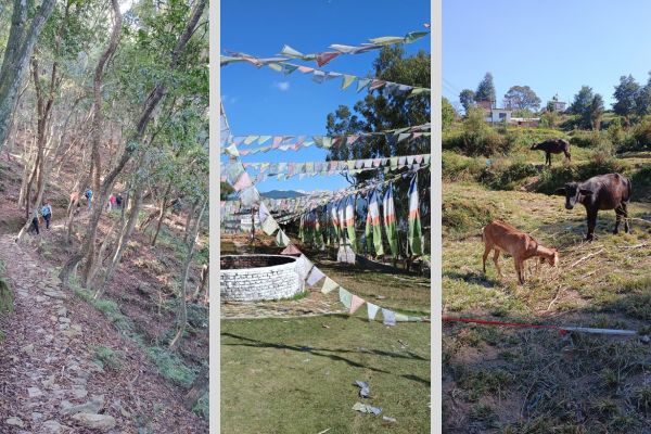 Fahrt, Wanderung, Fahrt. Schön früh waren wir am nächsten Tag unterwegs ins Dorf Telkot. Von dort aus wanderten wir durch den Wald zum Hindu-Tempel Changu Narayan. Dieser gehört zum Weltkulturerbe – manchmal fühlt es sich an, als stünde in Nepal alles und jeder bei der UNESCO auf der Liste.